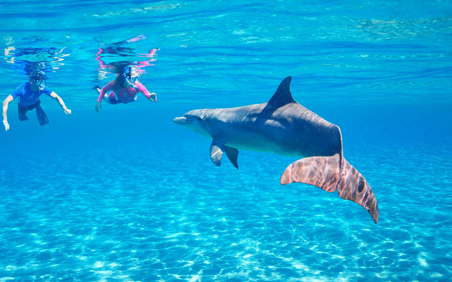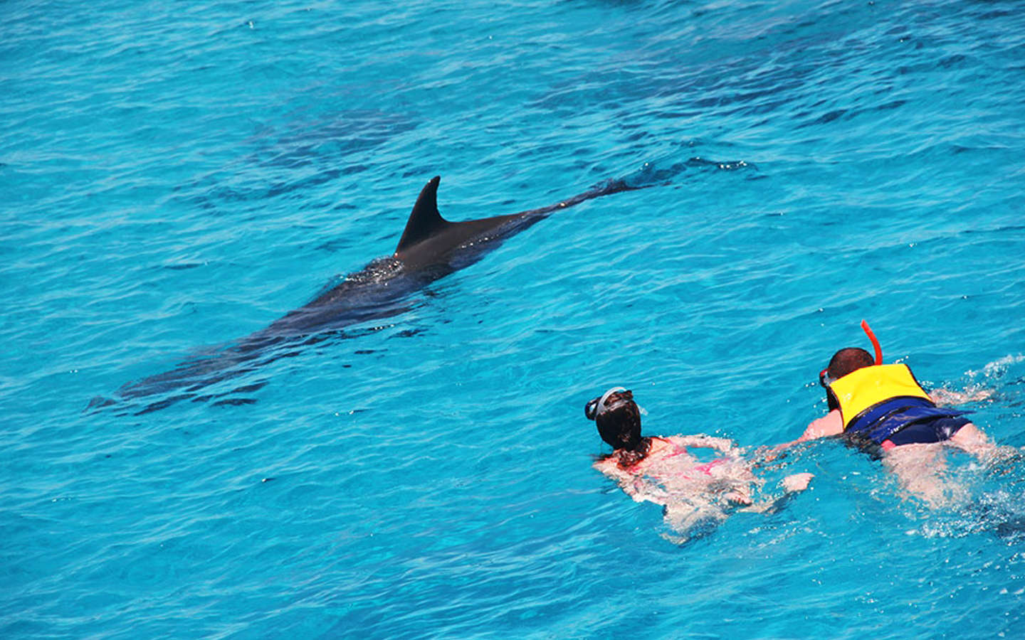 On the way, we will stop to do snorkeling in one of the areas of the coral reefs, when we reach the Dolphin House Reserve, we will tour the boat to watch the dolphin in the water, and there we will stop to do snorkeling and going down to swim with the dolphin.